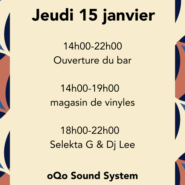 On démarre la lignée des soirées bar audiophile ce jeudi 15 janvier. Au programme, sélections de vinyles par Selekta G & Dj Lee diffusée sur oQo Sound System. Le shop de vinyles et le bar seront ouverts lors de l’événement.